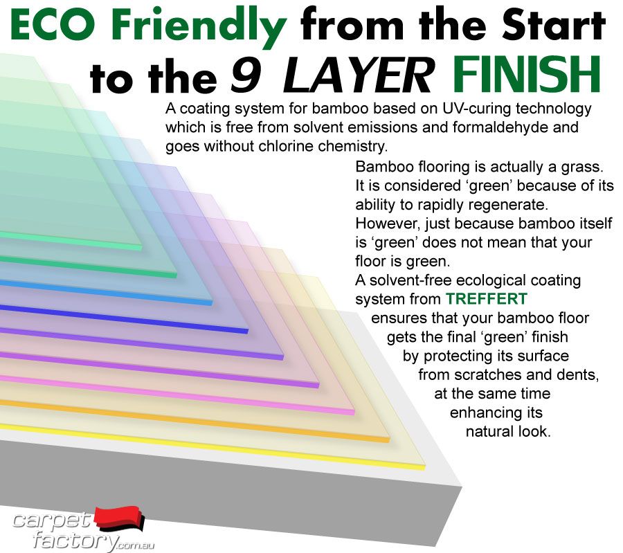 Green from Start to Finish – More about our strand woven bamboo 9 layer finish…. NOW WITH DOUBLE LAYER FINAL COAT – 10 layer finish.